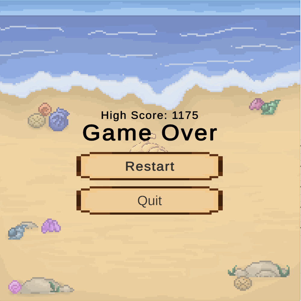 Nice game. I like the animations for the dad character, especially when he whacks a crab with his umbrella. It takes a while for things to ramp up, and I ended up with a score of 1175. The beach balls are the most dangerous obstacle because of how fast they are. Good work!