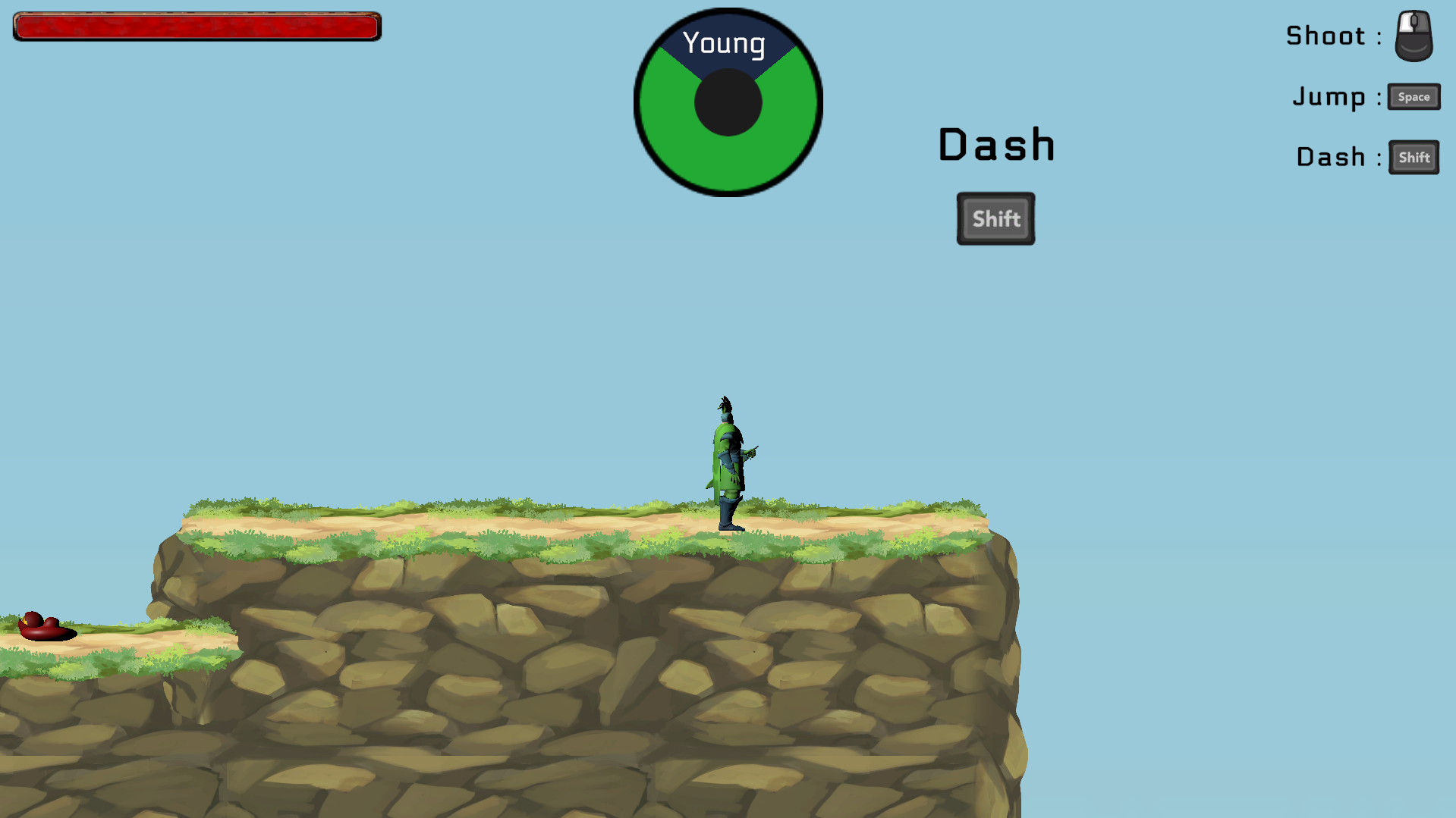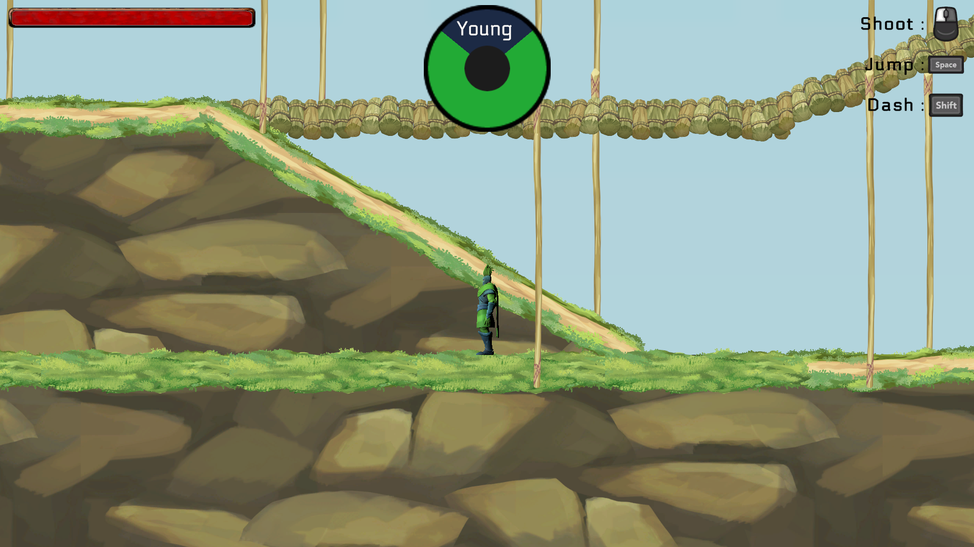 I think the health regenerates too quick. It's quite confusing where to go once you reach the dash section (figure 1). Some upward hill terrain has weird collision (figure 2). Found a bug when holding S and moving in this section (figure 3).
