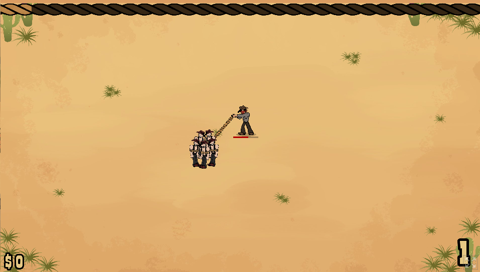 Thank you for playing! You can kick lassoed enemies if you double click the left mouse button. Unfortunately, it doesn't do any damage to the lassoed enemies (it does to others though), but you can grab some of them after they escape and eliminate the others to progress. I plan to make wave progression more consistent in the future. I appreciate the feedback!
