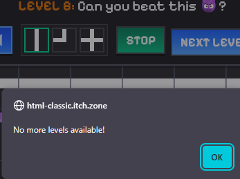 This is a little gem of a puzzle game. I was cruising until I got to level 7 and then you guys made me feel dumb. Took me waaaay too long to figure it out hahahaha. Really fun idea and one of the games I truly enjoyed all the way to the end! Good work.