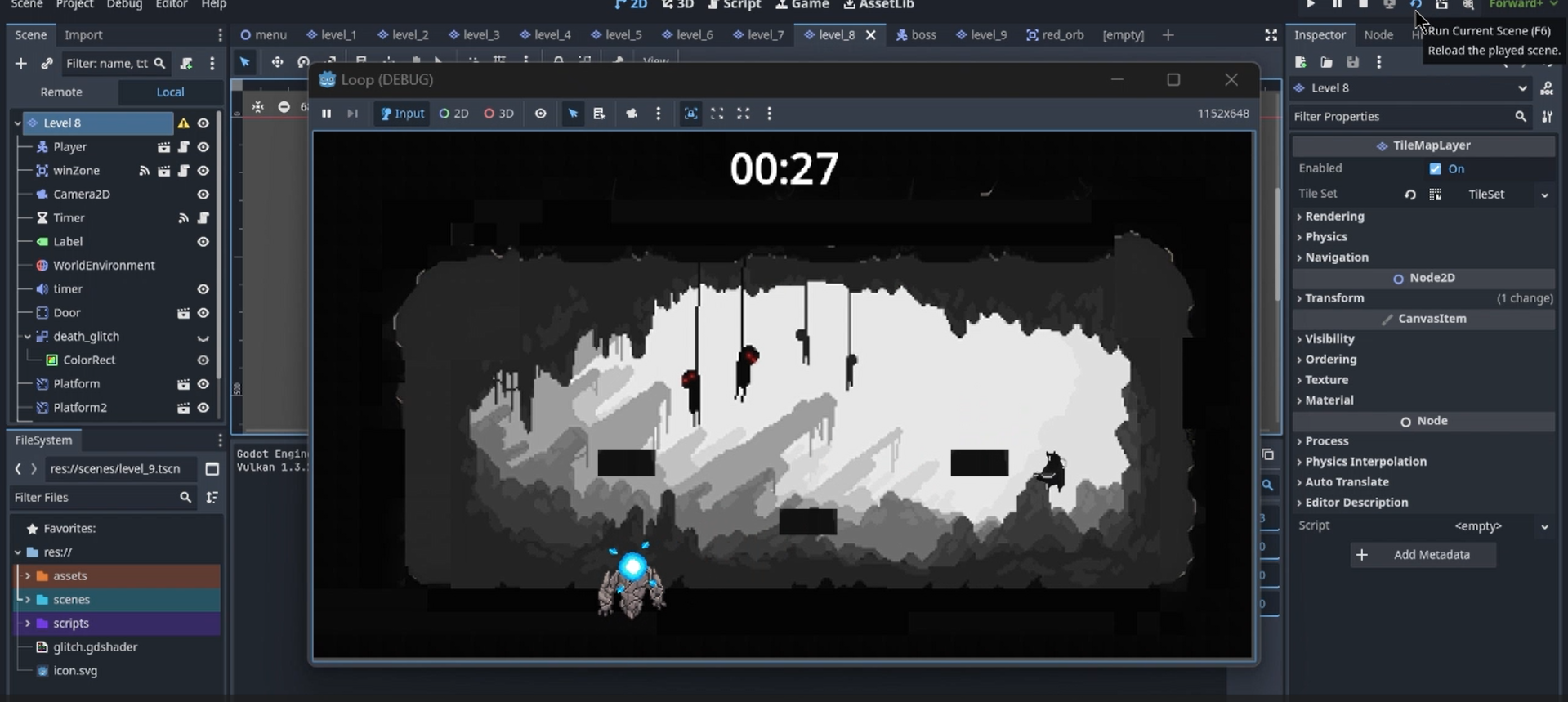 I really like the visual design, and the oppressive atmosphere is felt even without music. I think adding the sound of dripping water would be incredible! It would also be cool to make the switch a little more visible in some rooms. I took a long time to figure out some of the rooms :D