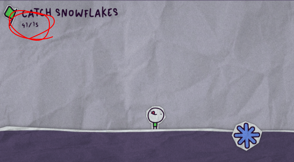 Thanks for the feedback! I forgot to change the render layer of the button so it’s on the same layer as the background and was then rendered behind it (the fix was barely not uploaded in time). I think you must have somehow collected two snowflakes on the same frame so that it would go from 14 to 16 and then missing the win check. That’s the only reason I could think of. :P