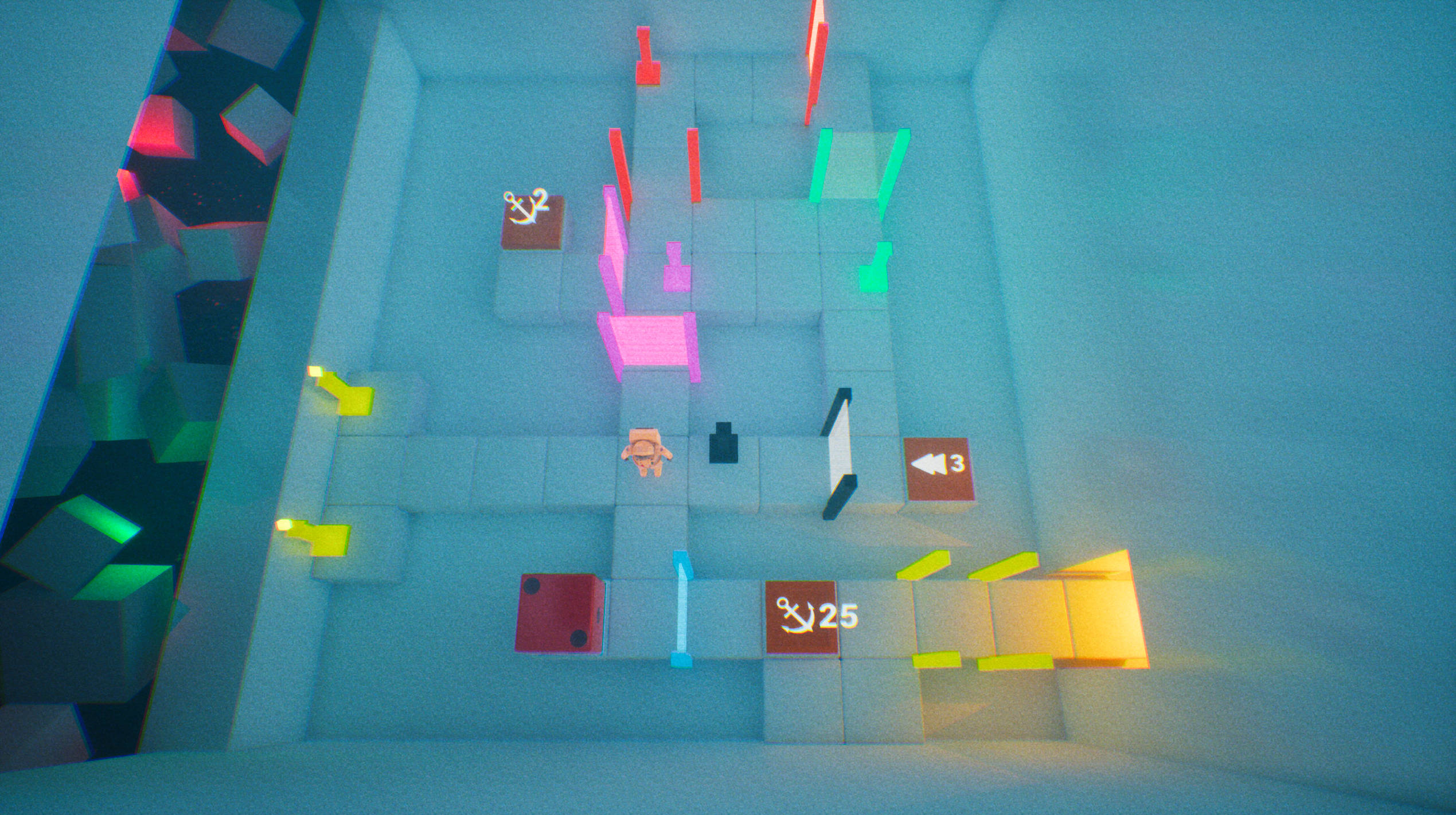 This level is sadly my bad, it is way too hard this early into the game. Basically the idea here is that you Anchor yourself with the 25 steps one and just as it is going to run out you need to Anchor yourself with the 2 steps one. By the screenshot it looks like you did everything correct but forgot to anchor yourself to the 25 step one a second time to get back to the start (and exit).