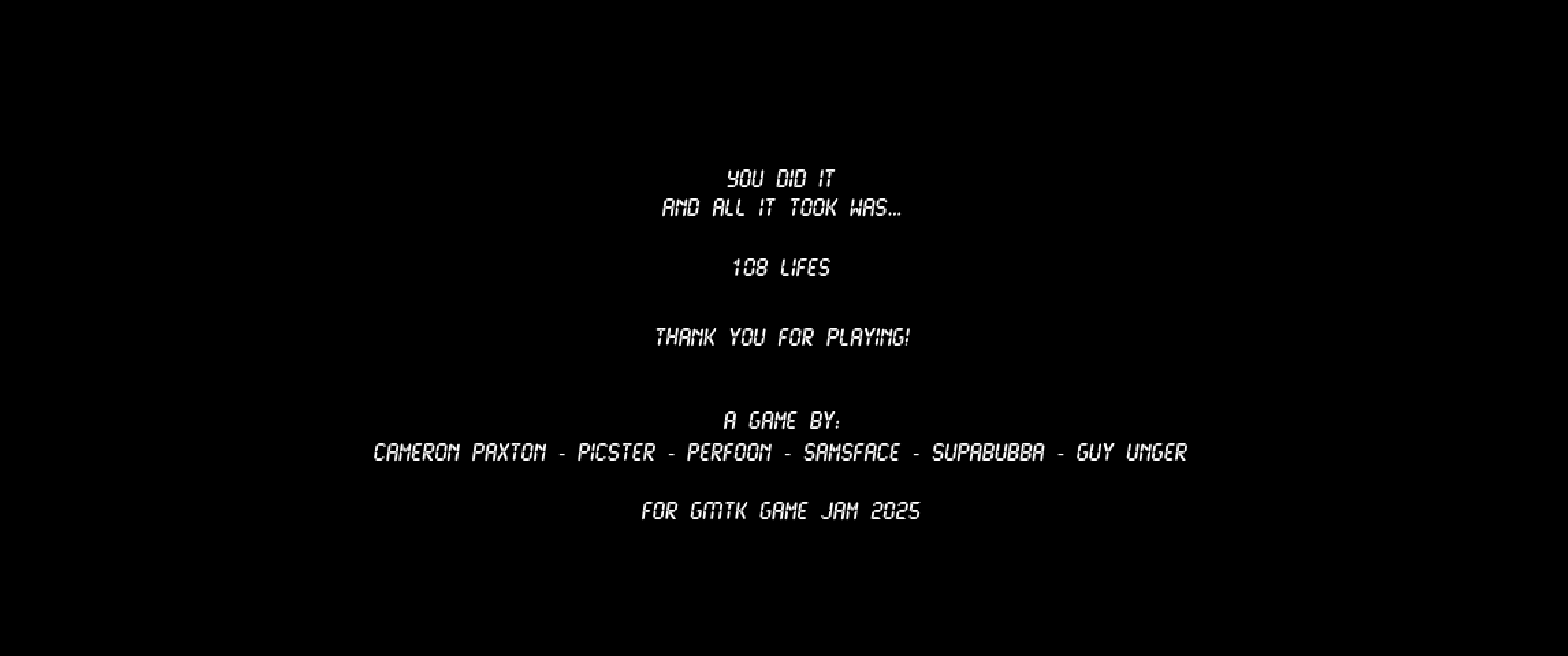 Absolutly excellent game! Such a unique take on the concept that wasn't just "use your previous lives as puzzle pieces", you all made it into a boomer shooter marathon. Great all around, lots of fun