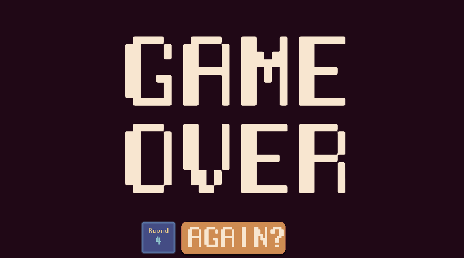I lost on round 4 with a score of around 210. It would be great to have a high score system in the future it would make it more fun to try and beat it. Overall, really solid project, I enjoyed it!