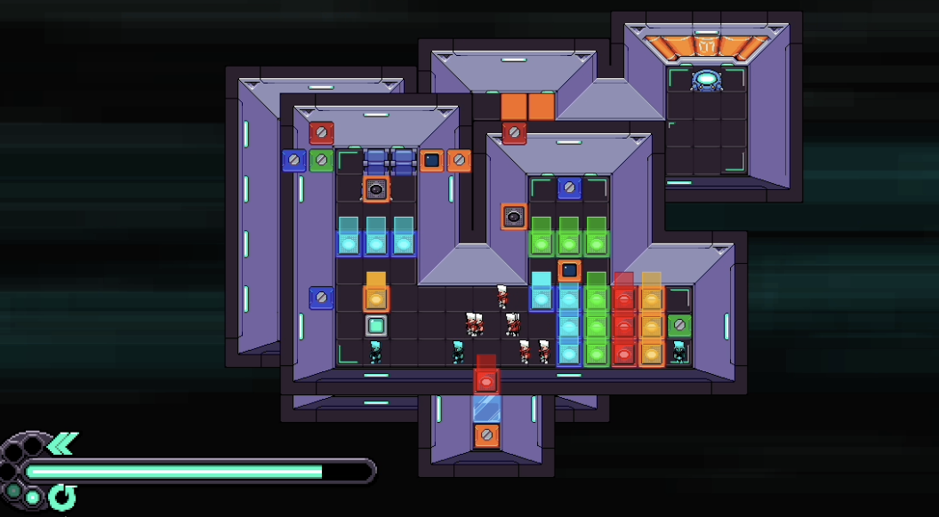 this is great! also I found a glitch! (you may have already found this, but if you mash the restart button (the one on screen) it will make a new copy of the level without erasing the previous, leading to a bunch of the "main timeline" people being controllable at once)
