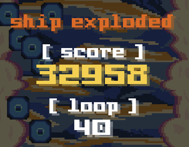 Liked the pixel art! I'd make the background a bit less bright so it wouldn't steal the show that much and it could be easier to focus on enemies & their shots with your side eye. And the background tilting looked cool but was kinda nauseating and disorientating.