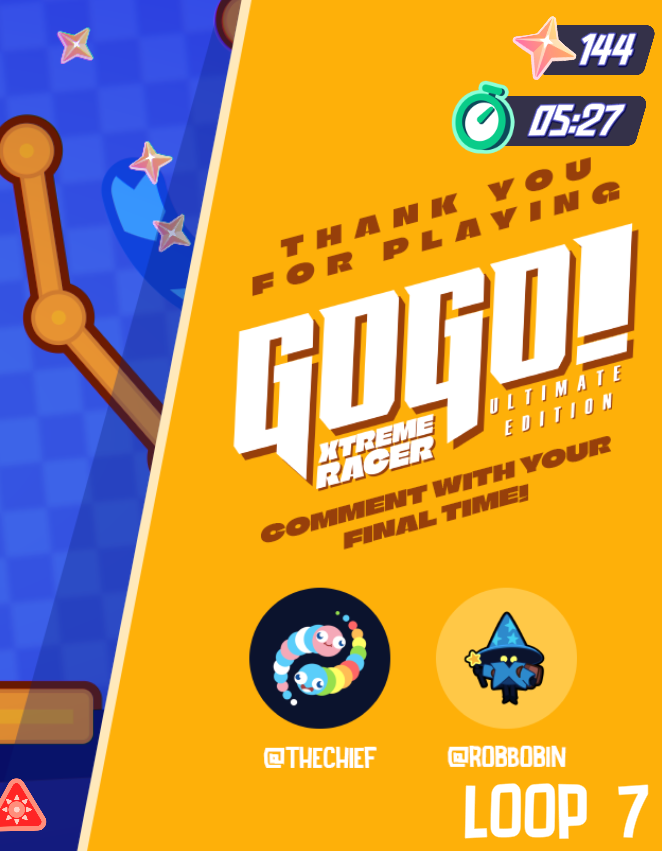 Either way, cool little game y'all made here. Right off the bat, the presentation is amazing. Love how readable everything was as well even as the track got more chaotic. Audio as a whole was also pretty charming.