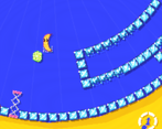 FRÜTLOOP takes place inside a giant wheel, each platforming challenge is repeated over and over, yet augmented both by the player's actions, the environment, and the slowly increasing speed of the wheel.