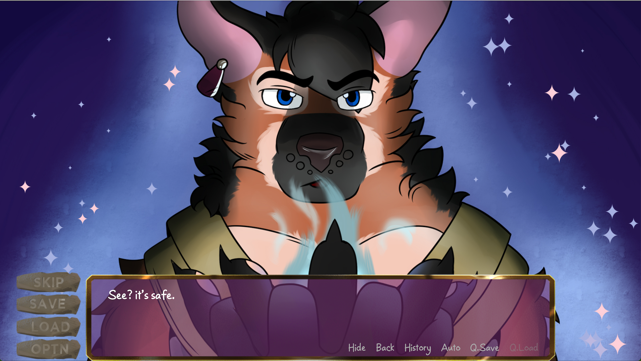 Just want to report a bug I found. If you choose to have Ehlly trust Ikalis and approach him when he has a mana flame dancing in his palm despite his fear of fire, when Ikalis says, "See? It's safe.", there is no label with Ikalis' name at the top of the text box, making it seem like Ehlly is thinking this despite the CG showing that he is speaking.