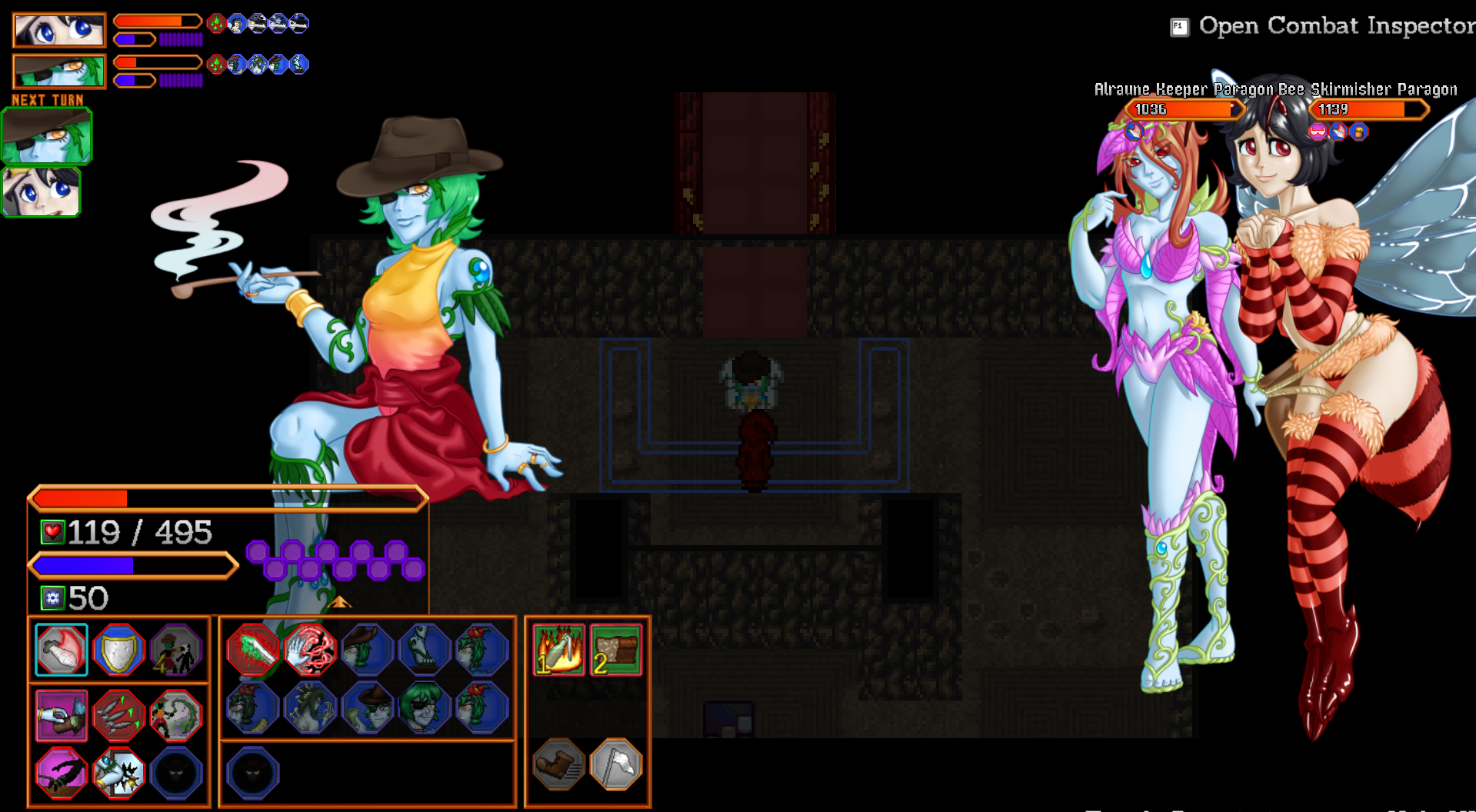 Embrace the suck. Also build poison resist, make sure that Florentina doesn't attack on the first turn/combat start, has defense. You need to knock out one fairly quickly because they will eventually win the damage race. As I recall the bee's easier to take down. The important thing is to have the poison resist because the Alraune does more damage when she consumes the poison Dot. It was perhaps the evilest thing I've ever done.