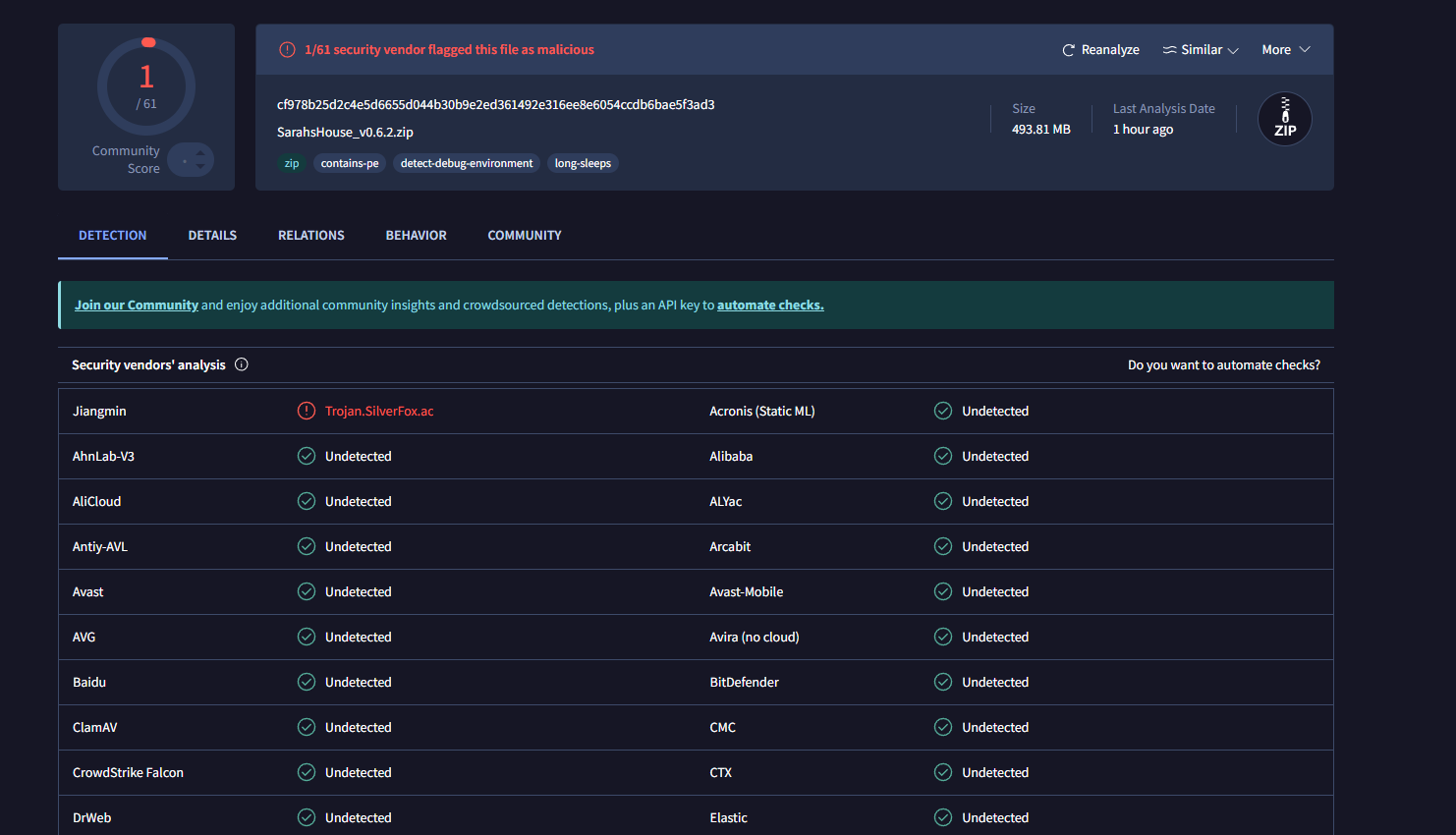 Virustotal is not an antivirus. It is a service that uses other antiviruses and shows you the result of those. And on your screen avast is showing no danger, along with 59 other antiviruses. Only one antivirus is showin a virus in it. I contacted them to mark it as false positive, but you should stop spreading misinformation, because you make people scared for nothing