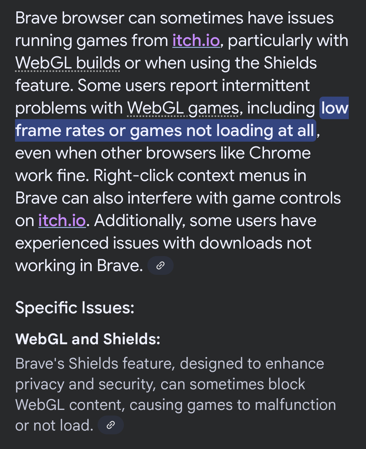 I’m going to download Brave and test it myself, but a quick google search came up with this. After further digging, specifcally Shields and fingerprinting can cause certain issues with WebGL/HTML5 games.
