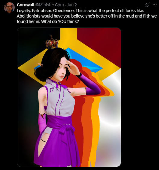 World history and geopolitics are massive interests of mine and it shows in game. The idea of a "nation" only took prominent hold in our world because of Germany in WW1 (A precursor being Napleon's French Empire.) Nationalism is a very new ideology and one I critique a lot, but specifically ultra-nationalism. In short they promoted the idea that specific people belong to their nation over the idea of a community of people working together, and that the people who do not belong to the nation should leave so that there are more opportunities for the nation's people. In Harem Hotel, this means working elves until they're dead and extinct, even though it was their land to begin with.