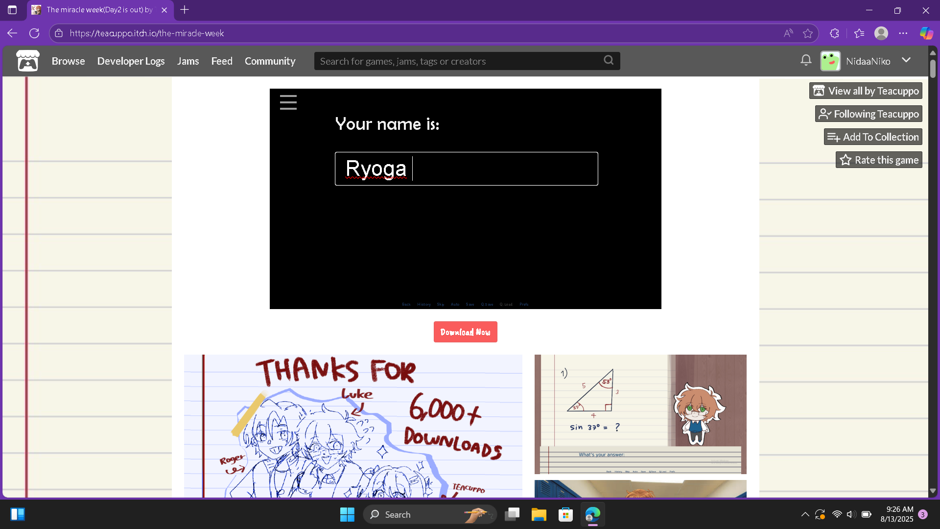 dude i love this VN but this is the second time that i can't go past the "What's your name" part, like i put my name and it doesn't go on the next thing
