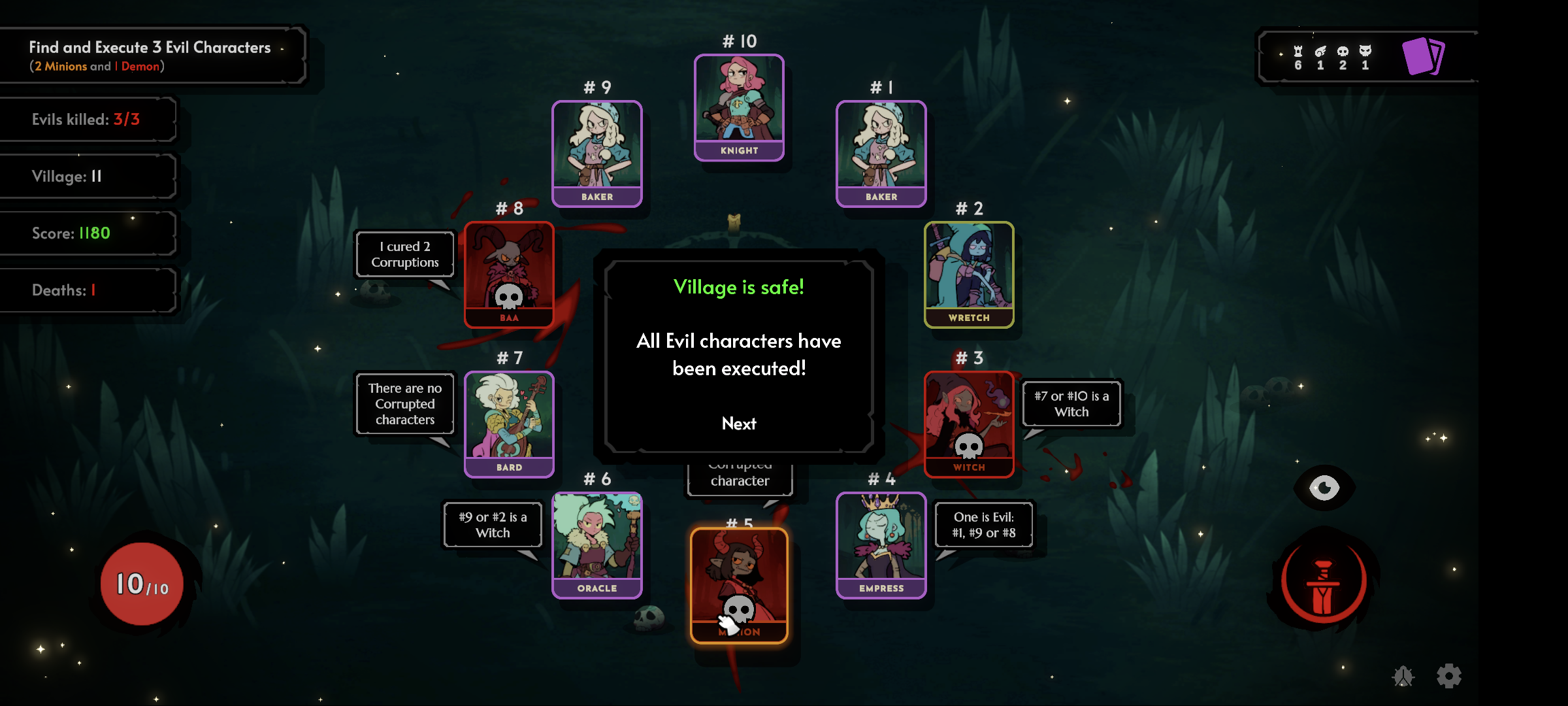 #6 says the witch is either #9 or #2 but, it is clearly #3 & there are no possible cards to corrupt anyone???