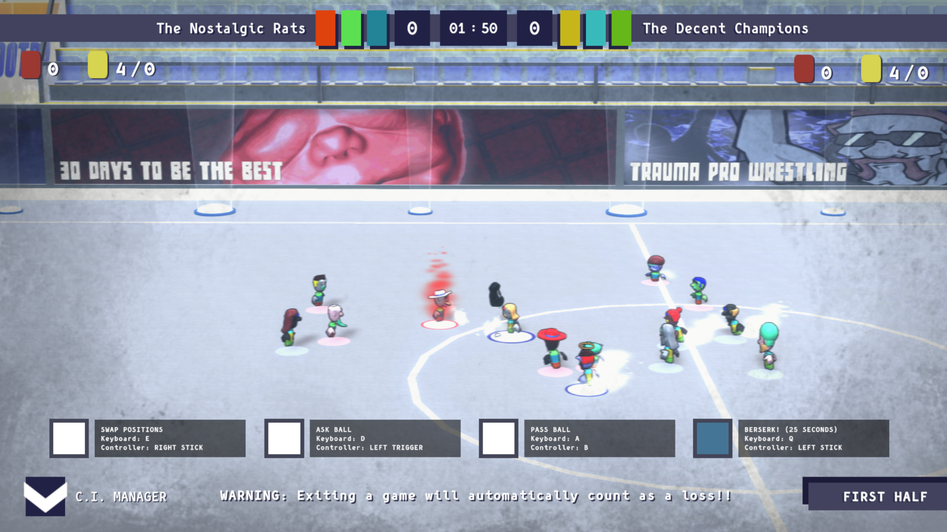 With this update i bring to you C.I. Manager, a game mode that is all about YOU GUESSED IT managing your own virtual team by giving them orders from the sidelines in the middle of the action, by modyifying and improving their playstyle to better fit your vision, and by using the newly introduced the Berserk, a mechanic gives a temporary boost to the stats of your team's captain!