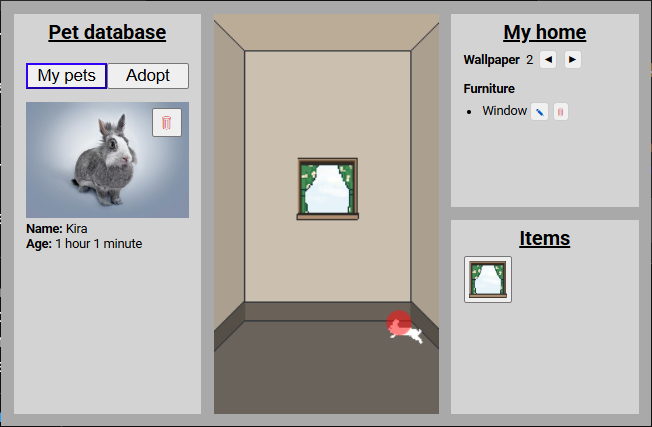 These assets are perfect for my upcoming workshop teaching programming. We are going to create a virtual pet and different items to interact with it. This is the current idea. Probably have to research your UI interfaces later on as you can see the current state of it :D
