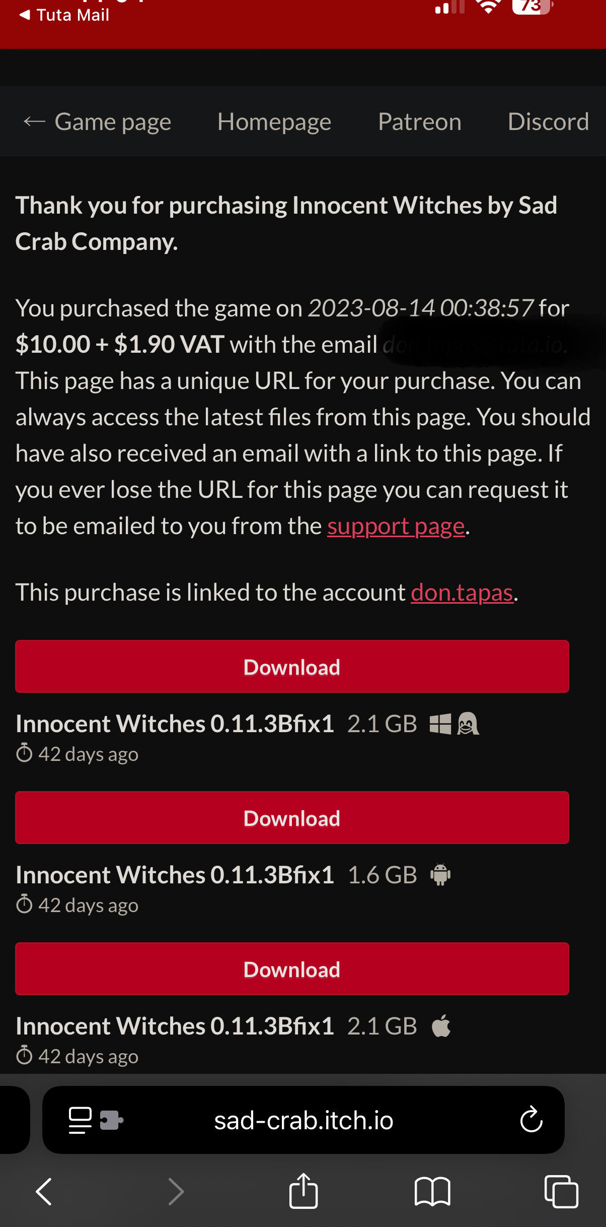 “Alpha” versions are available to 20$+ patrons (or 25$+ for itch). “Beta” version are available to 5$+ patrons (or 10$+ for itch), but later they are released to public access with the next alpha release. Each build includes the content of all the previous ones. The average time between releases is usually 2-3 months.