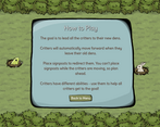 If I was to give feedback it'd be great if they moved just a little fast or have the option to speed them up and sometimes people like me like to just test the waters first before throwing a solution together. I also feel it would be a bit easier to grasp if the tiles took effect when the critters entered the tile and not the tile before... that might just be me though.