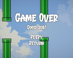 Cute. I like that the failure phrases aren’t harsh. Trouble is, I see too many of them. I can’t get past the second pipe more than like once out of every ten tries. Maybe I’m not catching on to the tricks.