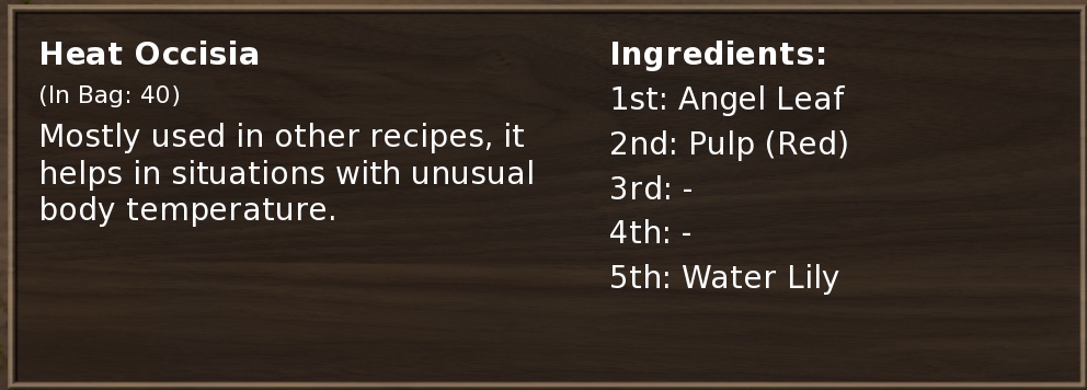 Heat Occisia is an ingredient, not a potion. Talk to Othra.