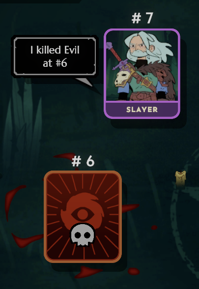 This feels like a bit of a buggy interaction, Slayer killed an unrevealed card, and it didn't show which evil it was.