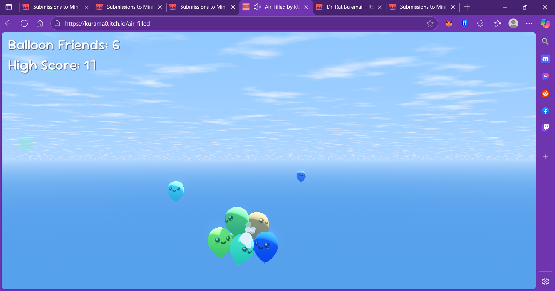 Visually and audio-wise, the game is really good and relaxing. The gameplay idea is nice too. My only concern is the hitboxes sometimes they feel a bit off (or maybe I’m just terrible at 3D games 😅). Overall though, good job on the game! I especially love the balloon models