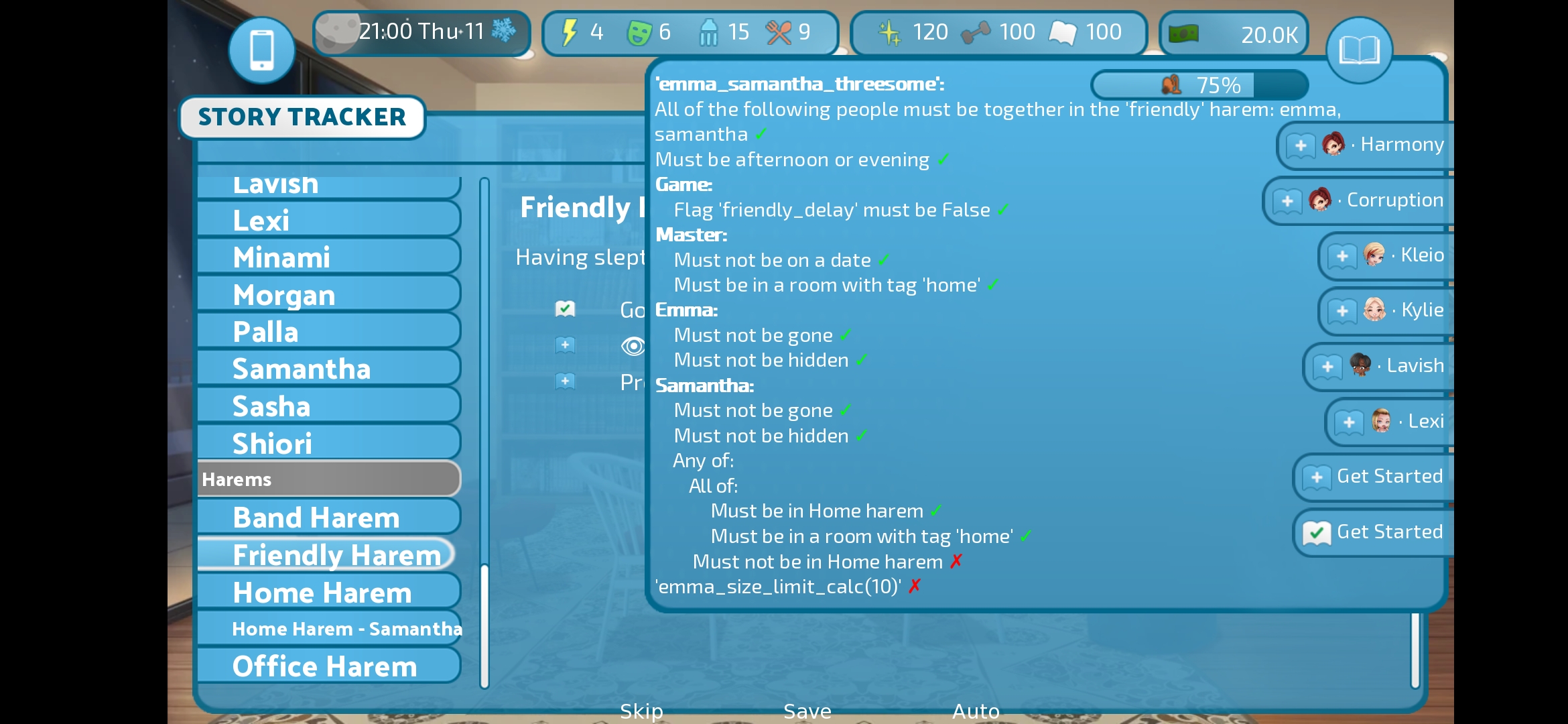 The Harem does not show to check the spoiler. MC had sex with Emma on Friday (albeit the first time) and Sam 2 days later but still the Harem did not get triggered.