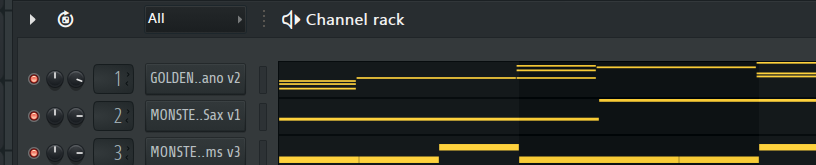 there's a bit of sax and this old piano (GoldenPiano) from Monster Plugins that emulates that 80s-style piano with effects, kind of smooth jazz; I'm still starting to test some melodies, but ever since I discovered this GoldenPiano plugin, I've been imagining some old jazz scenario