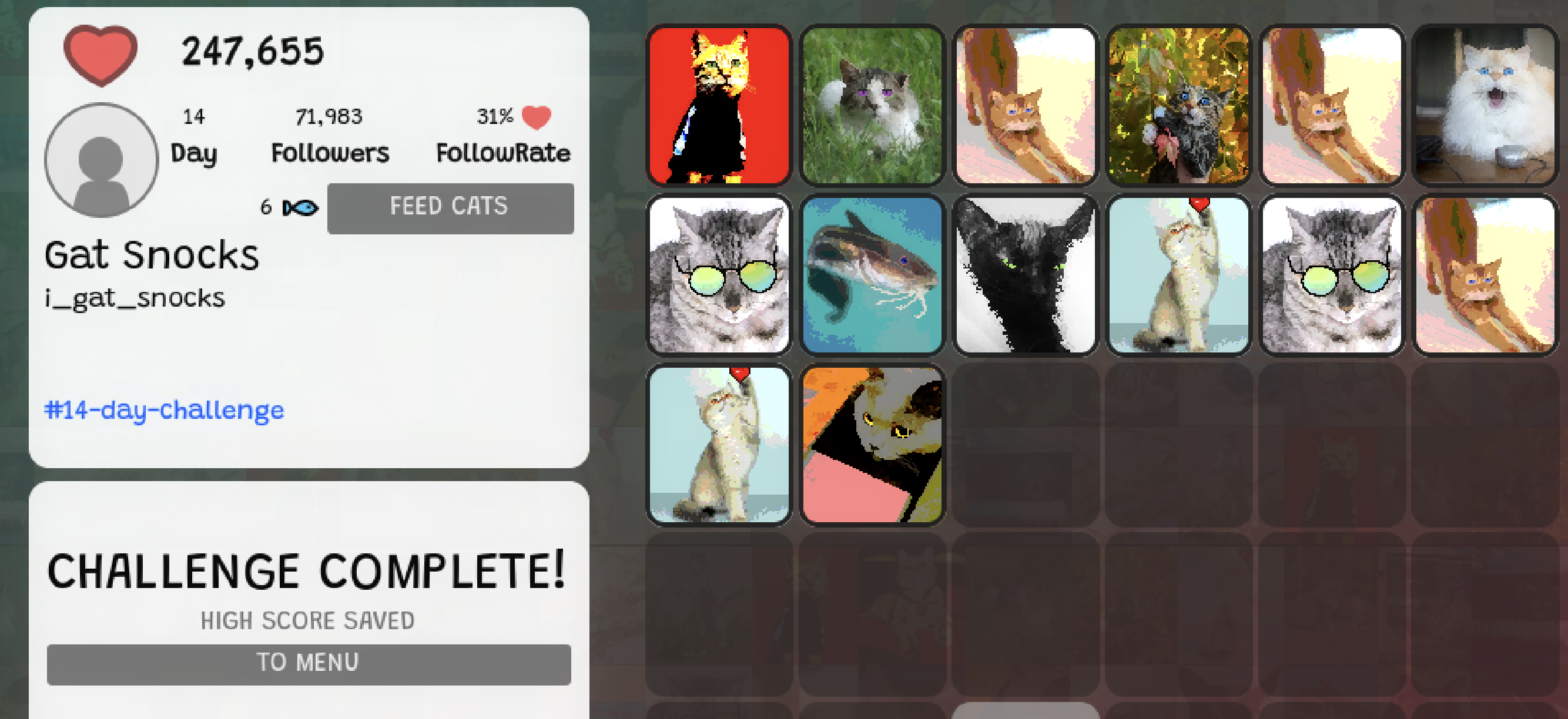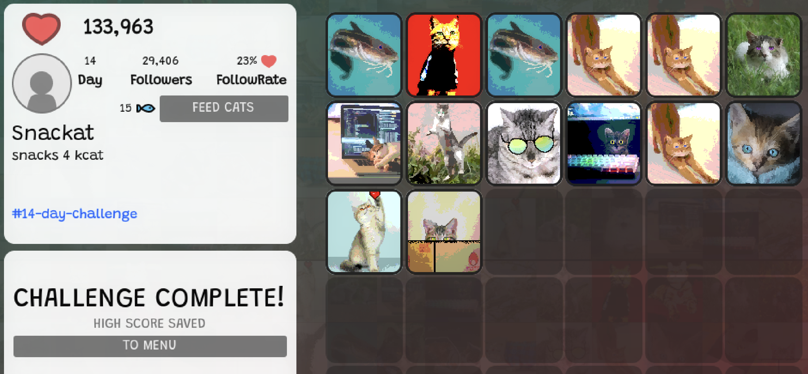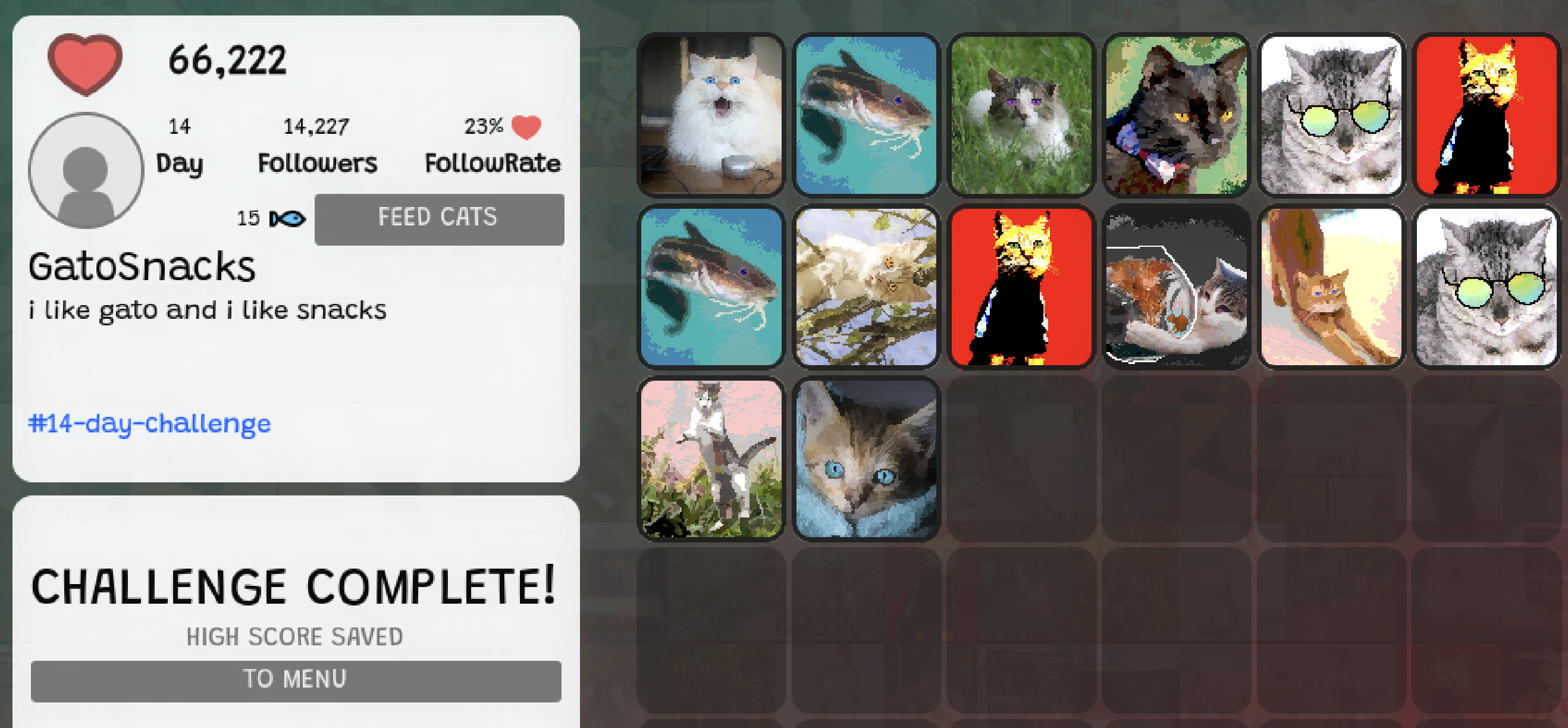 That's when I saw that other people had screenshots with layouts that went beyond the 14 days. And I realized it wasn't a calendar, but a grid you could organize. That you could move and re-order the cats.