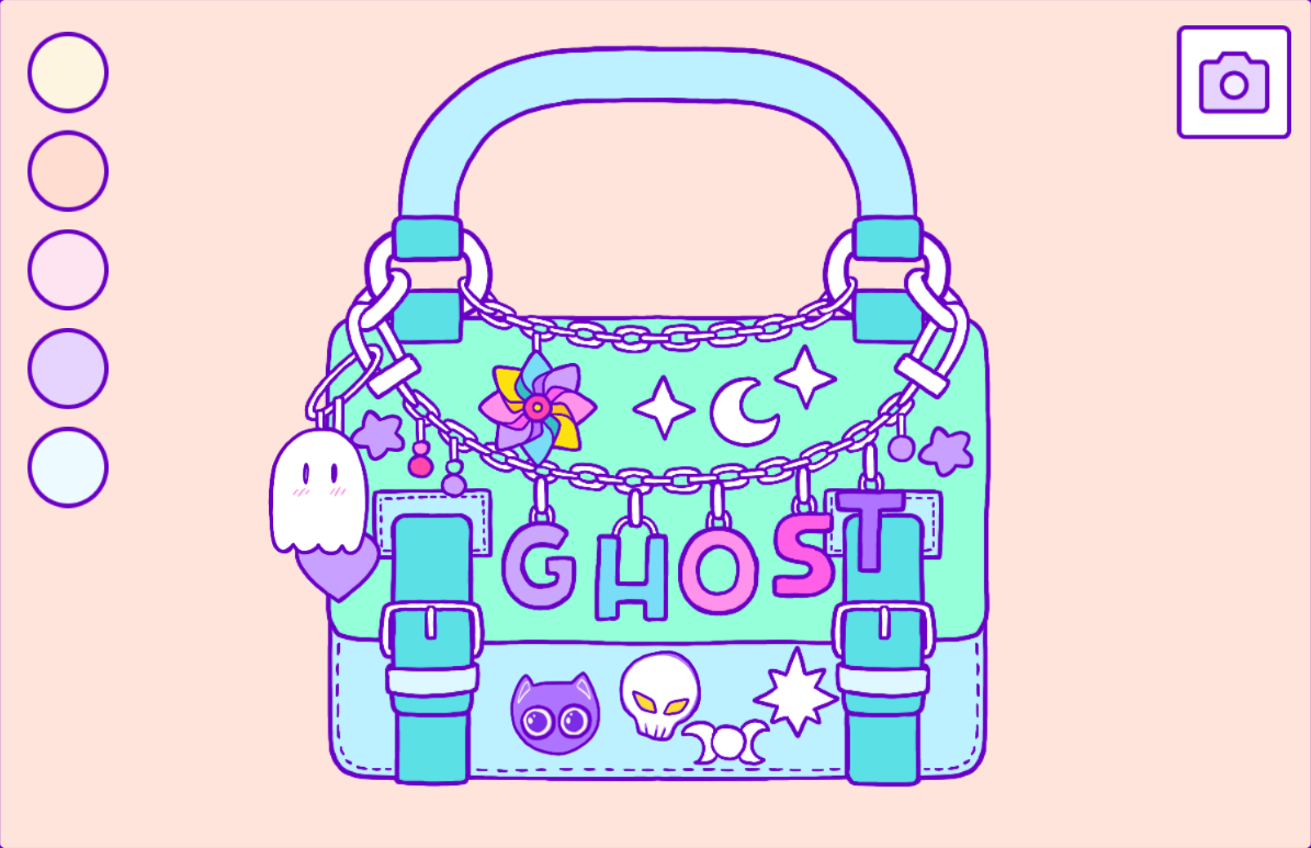 Lovely and visually stunning game! I've seen a lot of dress up games, but I never saw one for bags, it's a great idea! Thank you for including stickers too <3 If there was a way to "erase" a charm I didn't find it, so I had a bit of a hiccup where I was trying to pick a white sticker but it kept selecting the yellow one and they accumulated one over the other XD It was funny.