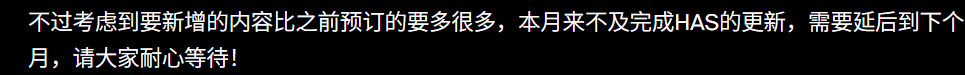 问题是这好像是7.30发的,现在都9.3了还没更新,已经一个多月了