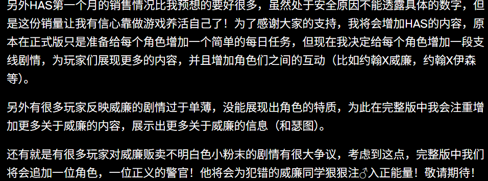 作者在patreon上写了的,因为销量超过他的期望所以决定多添加一些内容,要跳票一个月
