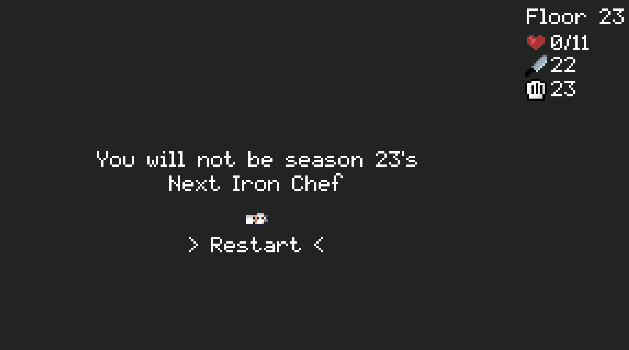 Thank you for playing! The chefs hats are armor!