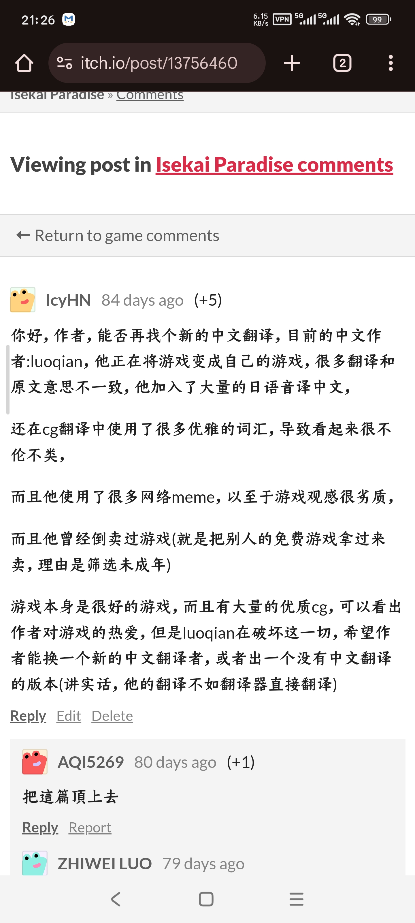 作者原本找好中文翻译的,不过找的翻译是个恶心人(可以看我下面的评论),这也不怪作者,不混中文黄油圈真不知道他的恶心事,然后作者就换中文翻译了,原来那个中文版本应该是半成品或者放弃了,等作者后面找新的中文翻译再汉化吧