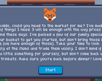 Cool game! I was a little confused at the start and when I tried bying stuff for dad he always seemed upset, but I really like the pixel art and the relaxing vibes from the music and calm gameplay, well done:)