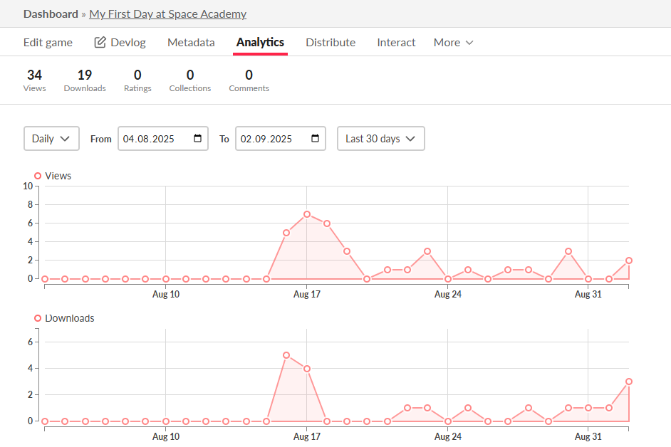 Ist doch quasi bei jeder Jam von MrLuchs. Die Leute kommentieren, wünschen sich ebenfalls eine Bewertung, aber gespielt haben es dann nur wenige. Downloads kann man in den Analytics sehen: