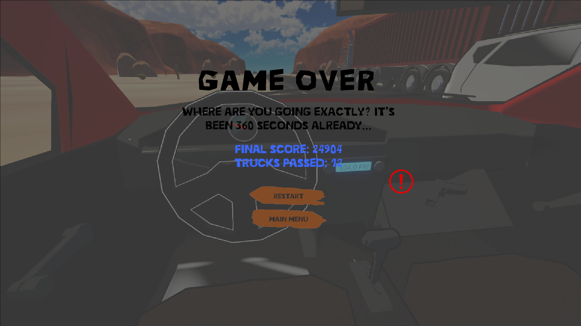 It's a really cool idea. Overtaking trucks really stresses you out, hoping you don't collide with a car. The radio breaking down is also really funny. Really interesting. I've enjoyed playing the game!