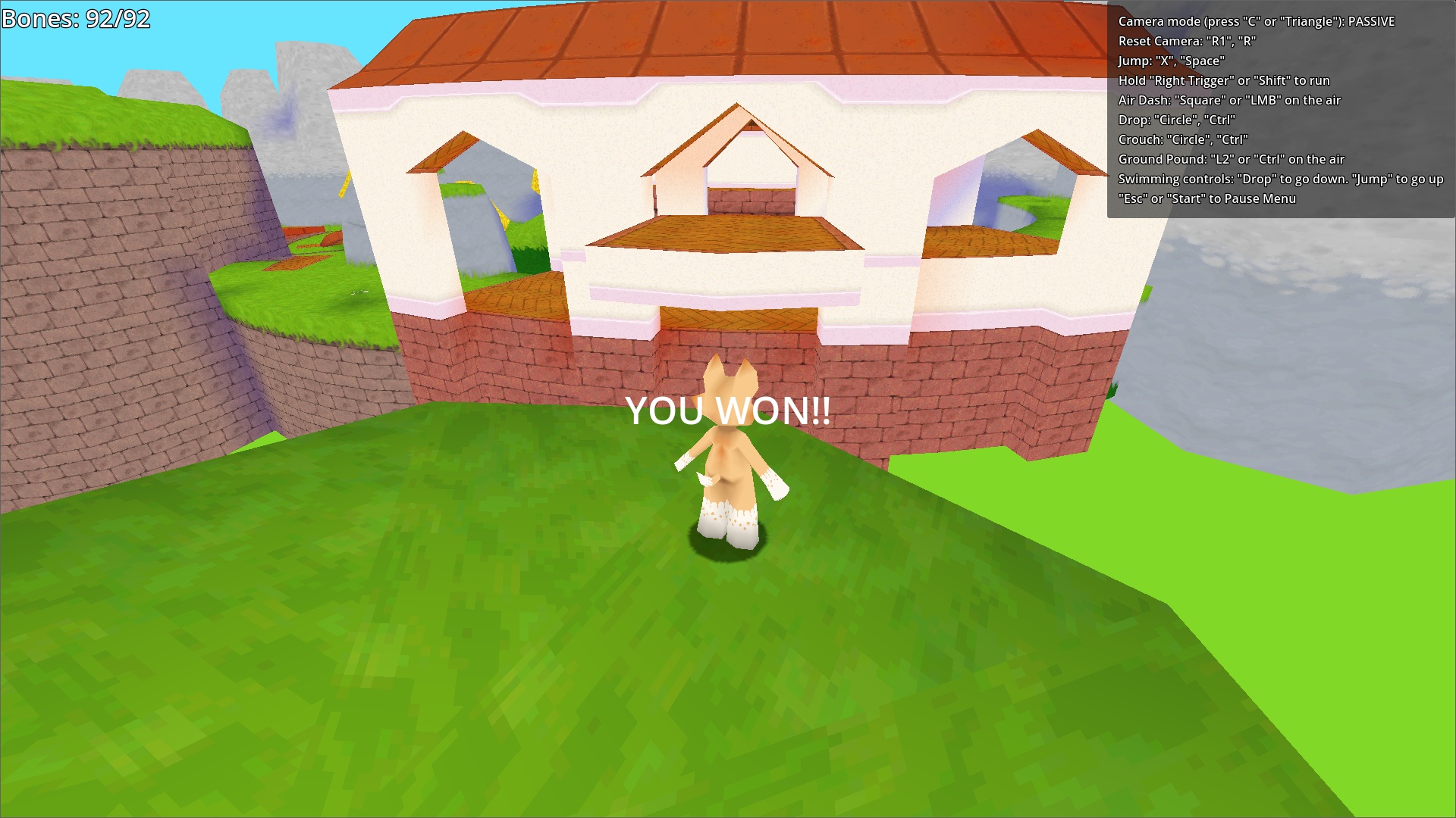 Very nice character controller, pleasant animation. I like the crouch jump stretching and when you hit the wall after air-dash. The graphics are also very nice, they remind me Spyro and Banjo Kazooie a little. I also like that you can climb a little when jumping on a wall and then jump again. Level is also pretty neat, I like that one secret cave next to a tree, also that shimming around a broken pillar. I'm a big fan of secrets and unlockable passages in 3D games so I'm definitely in favor of that stuff. Now collecting bones laying around can't be the main focus I'm afraid, unless you want to invite children playing Paw patrol shovelware xD. Also I have a feeling that you should put that dog in some clothes.