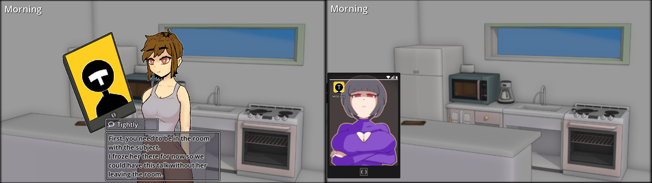 In the intro, Mia should only show up during dialogues, not when using the phone.