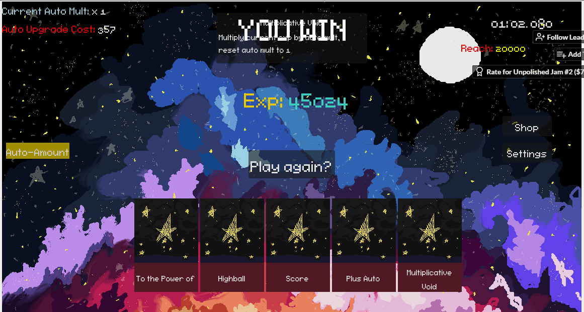 yea, i dont know what it is with the settings in-game, because it worked perfectly fine in godot and the music IS supposed to loop but that is another issue, but I'll deal with it later. Also, congrats on winning :)