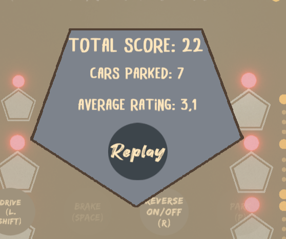 Hey The2lu! Awesome entry! I didn't expect parallel parking to be fun but you managed to put it in a nice gameplay loop. The visuals are solid and you managed to visualize everything well even though we were restricted to very basic shapes, good job! Everything was recognizable. The sound works well, and supports whats happening on the screen although I found the classical music a bit unfitting.