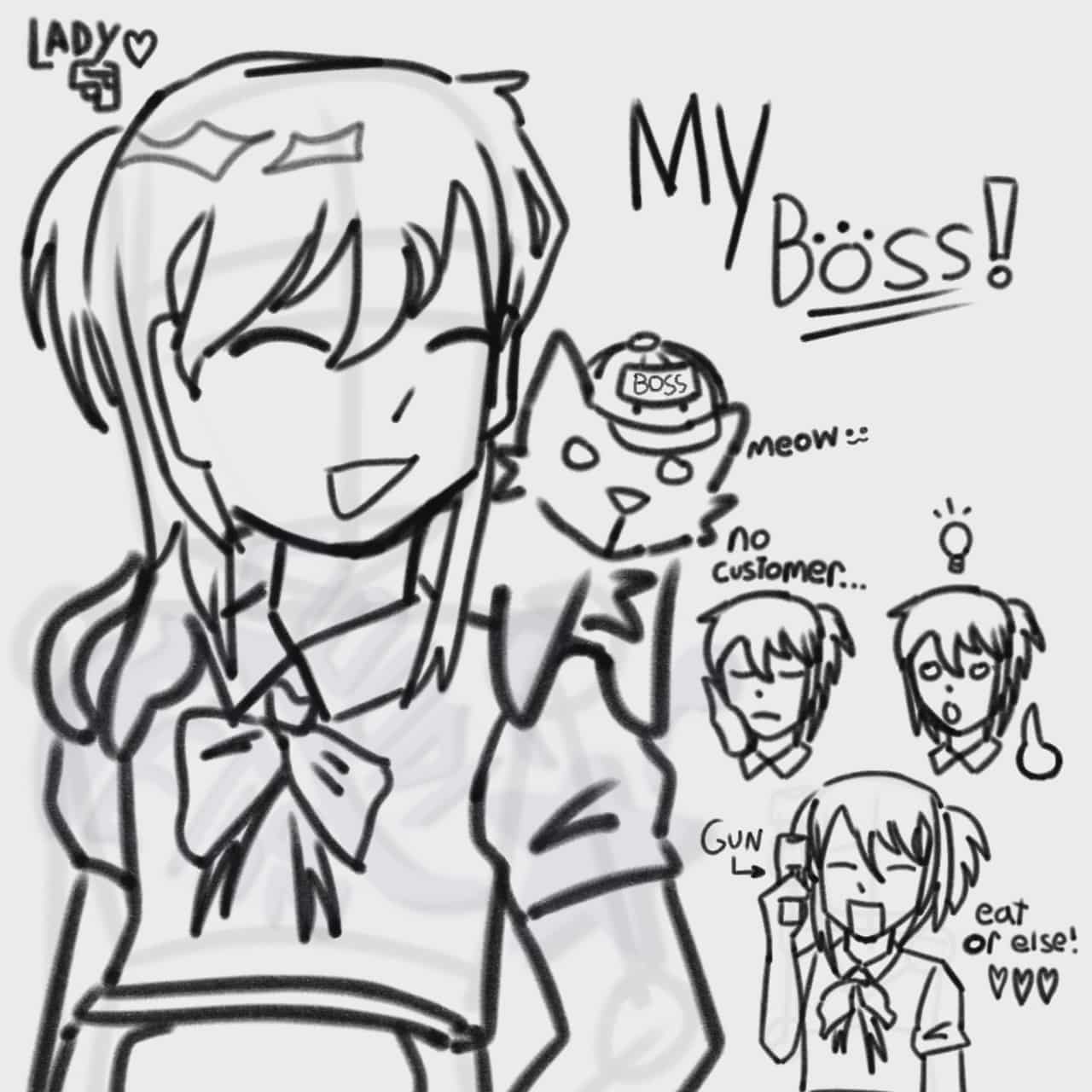 WOW THAT WAS QUICK, SO COOL... im glad u like the game alot🥲u got yuritron down so good in this pic, i love how emo and brooding she looks... i like how her mouth is drawn too, makes me think of Gitaroo Man ^_^ these lady drawings are even cuter than the first, its really fun seeing him with his gun especially... i think i have a huge bias for cute things handling firearms... the boss perched on his shoulder is the cutest thing ever too wow... i bet theyre best friends.