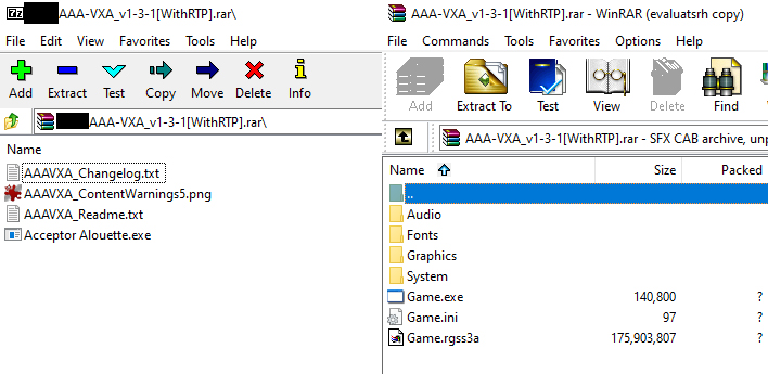 Okay, I see what the problem is. For whatever reason, when you open the rar with WinRAR you don't get the same results as when you open it with 7zip.