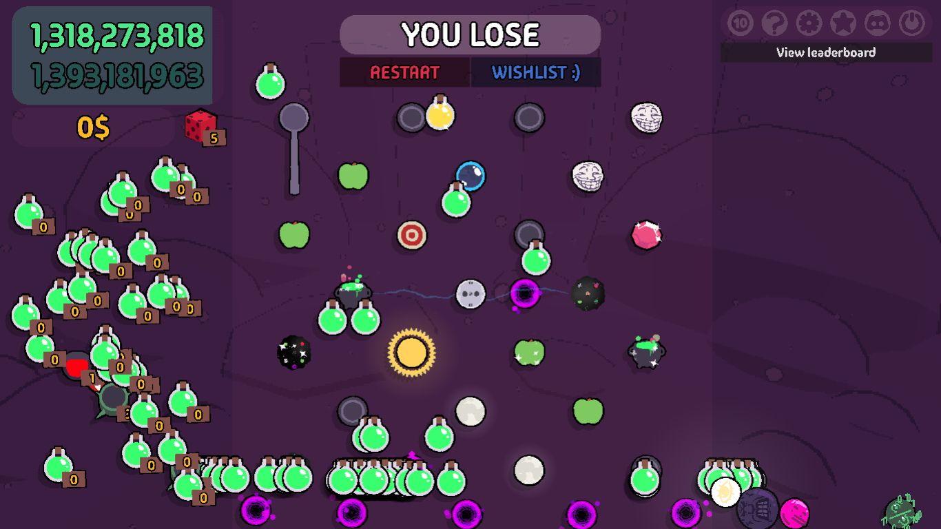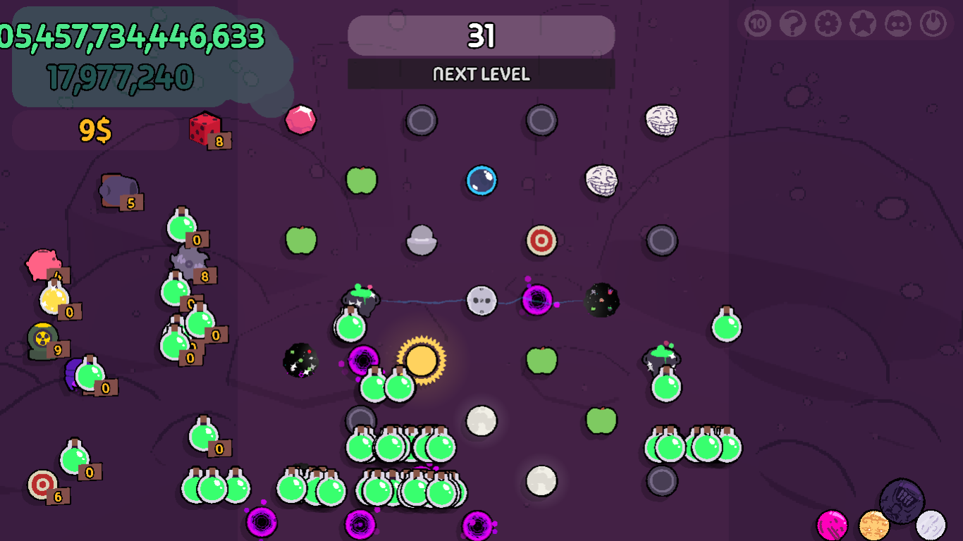 you put the key above cauldron which when upgraded gives you the yellow potions (all types of potions upgraded or not can be placed anywhere), and when the key is put above the portal, any new portals bought from the shop can be placed anywhere on the board, does not have to be on a peg. how did I get to that point? lots of multipliers and luck.