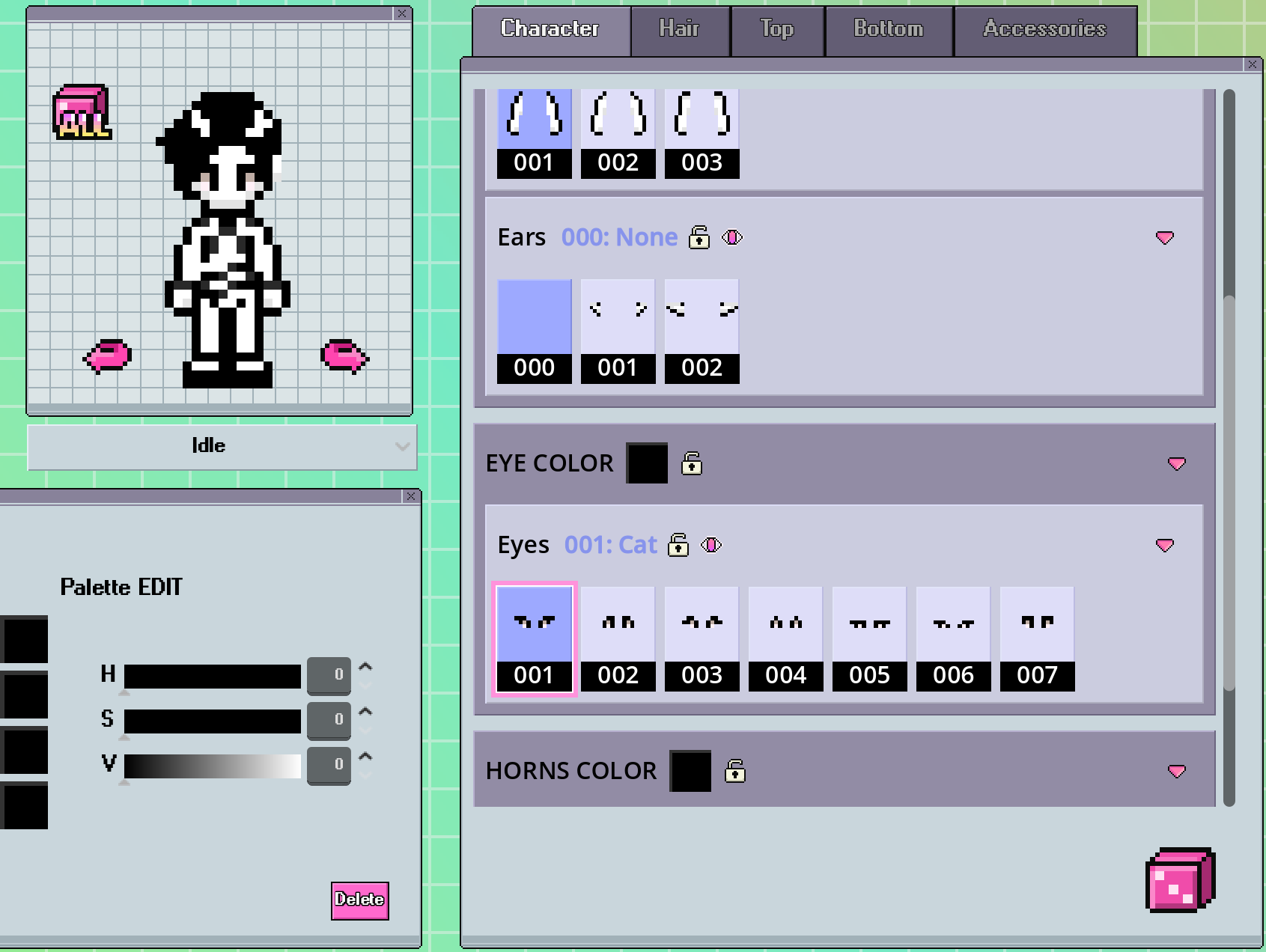 For the eye colors, the whites of the eyes are currently hard colored (because it would mess up the universal palettes for like pants or hair). I will need to do some rearranging with the palettes and recolor the sprites first! I'll also aim to have that done for the next update.