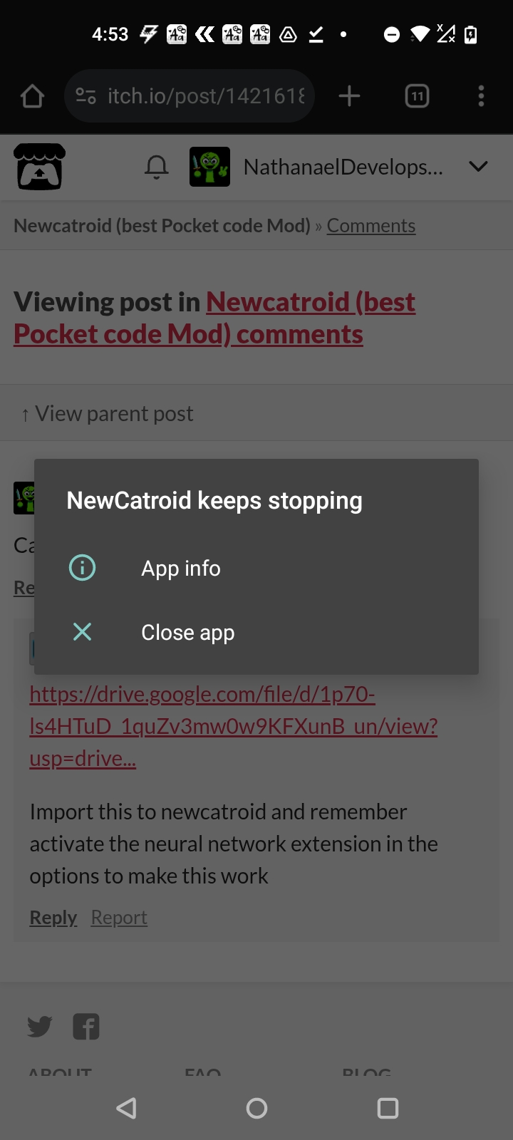 Viewing post in Newcatroid (best Pocket code Mod) comments