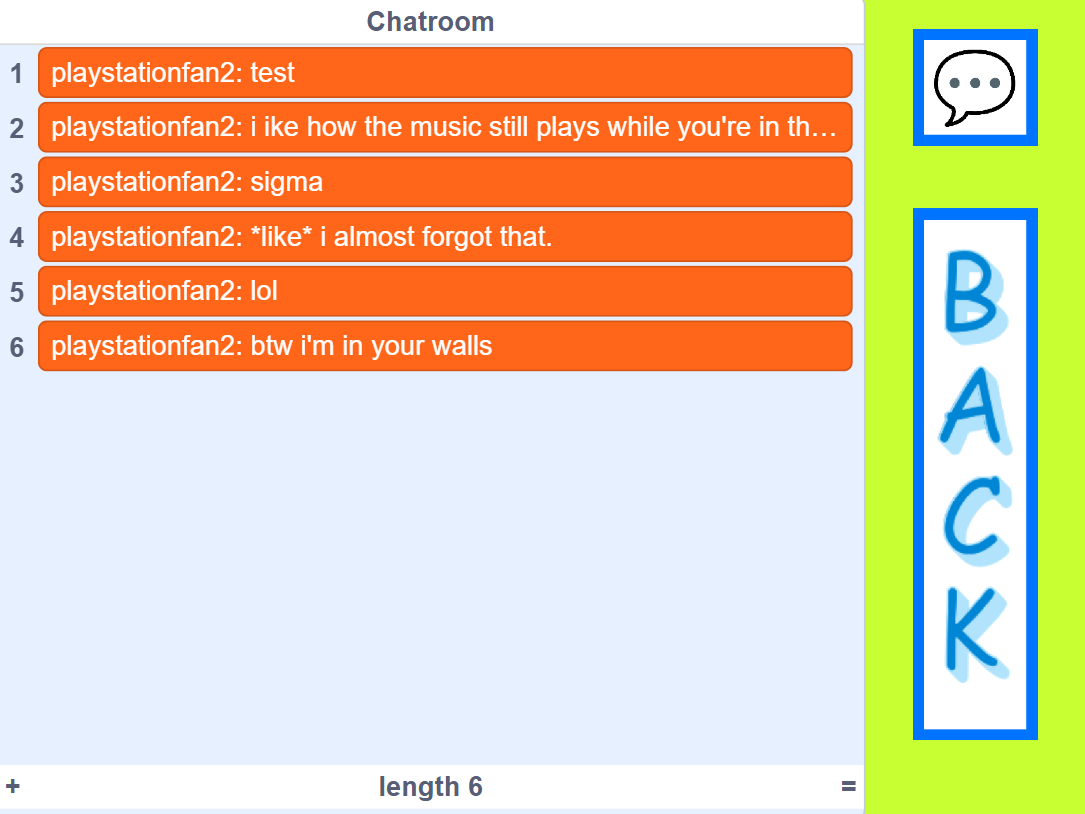Just added a chatroom in Little Ol' Whacker 7 cuz' bored.
