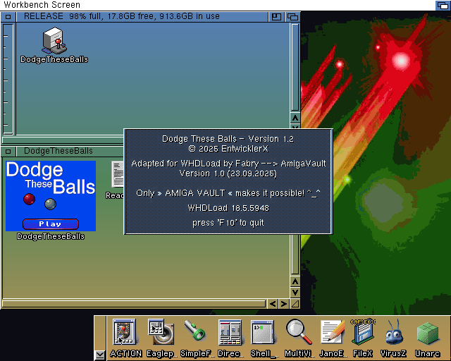 Great game indeed, congratulations! Our Amiga Vault Team is specialized in the creation/conversion of Amiga games and programs in standard WHDLoad format with specific slave, custom splash screen, hybrid icon (OldIcon+NewIcon+ColorIcon) compatible with all AmigaOS and readme files if available.
